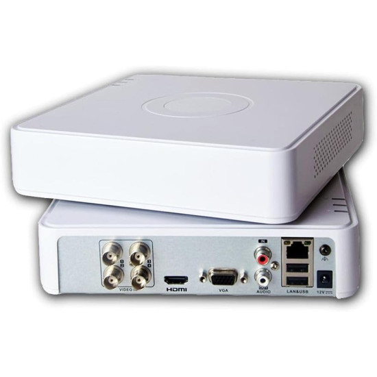 HIKVISION 4-CH Turbo HD 1080P DVR, Connectable to HD-TVI & analog cameras, VCA detection alarm (line crossing detection & intrusion detection) is supported, 1 SATA interfaces Support access by EZVIZ Cloud P2P, Support Hikvision DDNS. It features efficient H.265 pro+ compression technology. It has an encoding ability up to 1080p @ 15 fps. It supports 5 signals input adaptively (HDTVI/AHD/CVI/CVBS/IP). Up to 6 network cameras can be connected. It has a 1-year warranty.