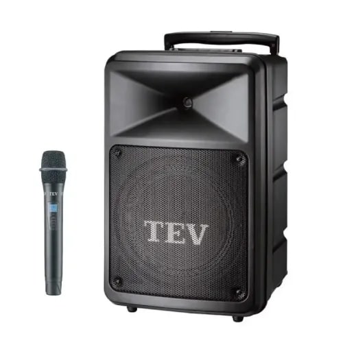 The TEV TA-780D 10" 300W Portable PA System offers impressive audio in a compact package. It offers a Class D power output of max 220W for both main and secondary power channels, minimizing distortion with a T.H.D. of less than 0.5%. This versatile system includes features like adjustable echo and reverb effects, along with Bluetooth 5.0 connectivity for seamless wireless audio streaming. TEV TA-780D Portable PA System is equipped with an 10” full-range speaker and a tweeter horn. It ensures high-quality sound reproduction across a frequency response range of 60Hz to 20KHz. The TEV TA-780D 10" 300W Portable PA System operates with a rechargeable 21.6V/4.9Ah lithium battery, providing up to 10 hours of standby time on a full 5-hour charge. It supports various microphone options, including handheld, lavalier, and headset wireless mics, as well as wired microphones.